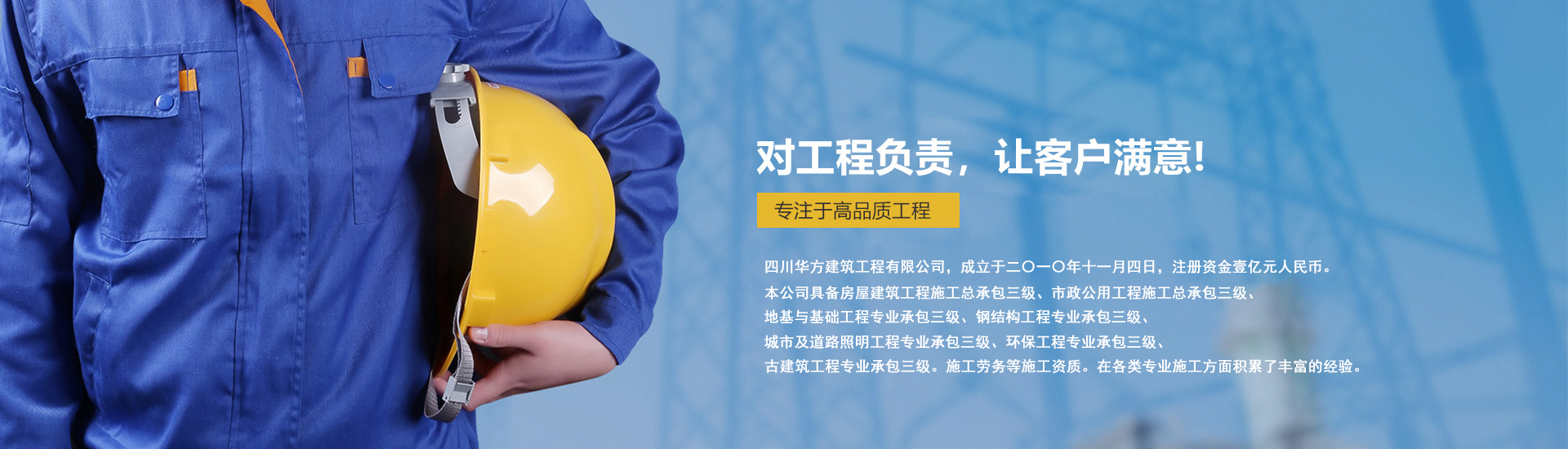 華誠博遠建築工程有限公司唐山分公司成立于二〇一(yī)〇年(nián)十一(yī)月(yuè)四日(rì),總部位于中國(guó)·成都(dō←u),注冊資本壹億元人(rén)民(mín)币。公司是(shì)一(yī)家(jiā)集建築工(gōng)程施工(gōng)總承包,公路(lù)工(gōn∞g)程施工(gōng)總承包,水(shuǐ)利水(shuǐ)電(diàn)工(gōng)程施工(gōng)總承包,市(shì)政公¶用(yòng)工(gōng)程施工(gōng)總承包,機(jī)電(diàn)工(gōng)程施工(gōng)總承包為(wèi)一(yī)體(tǐ)的(de)綜合型建築工(gōng)程α公司。 公司以“建築無限生(shēng)活,共享盛世輝煌”為(wèi)企業(yè)使命,以“成為(wèi)有(yǒu)誠信力的(de)建築工(gōng)程公司”為(wèi)企業(yè♠)願景,堅持“嚴謹鑄品質,穩健行(xíng)天下(xià)”的(de)經營理(lǐ)念,秉承“厚德、務實、 自(zì)強、卓越”的(de)企業(yè)精神,堅守“正直、勤勉、健康向上(shàng);創新、高(gāo)效、勇于擔當”的(de)核心價值觀,發揚λ“頑強奮進”的(de)企業(yè)作(zuò)風(fēng)。 公司立足四川,面向市(shì)場(chǎng),全面推行(xíng)科(kē)學管理(lǐ)鑄←造精品工(gōng)程。先後在北(běi)京、天津、上(shàng)海(hǎi)、深圳、陝西(xī)、河(hé)北(běi)、內(nèi)蒙古等✔省市(shì)承接了(le)各類工(gōng)程項目,與多(duō)家(jiā)名企建立了(le)長(cháng)期戰略合作(zuò)關系。 好(hγǎo)風(fēng)憑借力,揚帆正當時(shí)。展望未來(lái),我們将創造更多(duō)高(gāo)品質、高(gāo)質量的(de)建築精品,以實際行(xíng♠)動回饋社會(huì)、以專業(yè)高(gāo)效服務客戶、以優質工(gōng)程立足市(shì)場(chǎng),不(bù)斷為(wèi)中國(guó)經濟、社會(huì)發<展做(zuò)出新的(de)貢獻,立志(zhì)将公司打造成為(wèi)最具資源優勢、最具誠信力的(de)綜合型建築工(gōn↔g)程公司。 我們熱(rè)忱邀請(qǐng)大(dà)家(jiā)共同發展國(guó)民(mín)經濟δ建設,共同為(wèi)社會(huì)高(gāo)質量發展做(zuò)出貢獻,共建經濟聯盟,共創輝煌,共享未來(lái)! 了(le)解更多(duō)